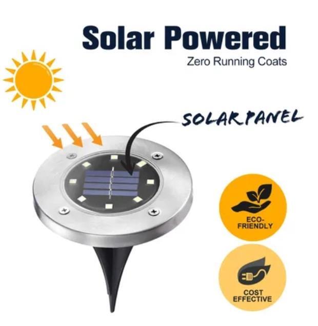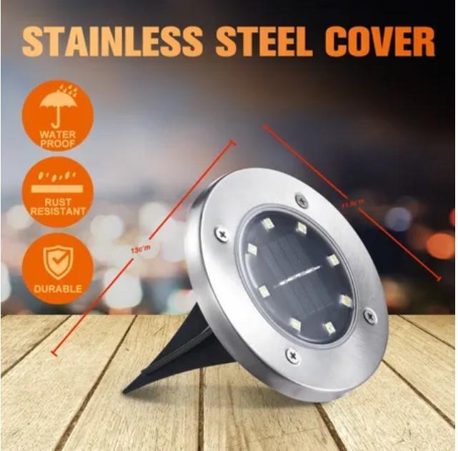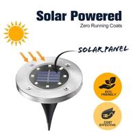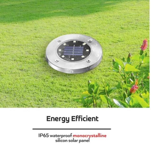 Install the solar lights in your garden, deck or any outdoor areas to meet your various lighting needs. The solar panel is constructed of high efficient poly silicon, which has the ability to absorb the sunlight in the day and then convert it into energy to power the light at night with LED lights and solar-powered batteries. Each inground light has 8 pieces of powerful LED lights, which ensures to cover a wide range of up to 5 metres, providing a super bright recreational zone for you and your guests. The solar led lights are capable of producing light for more than 8 hours on a full battery charge. The solar inground lights are constructed of high quality stainless steel and ABS, which is water resistant and long lasting to deliver continuous light all the year round.