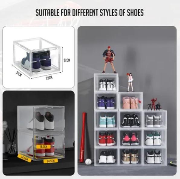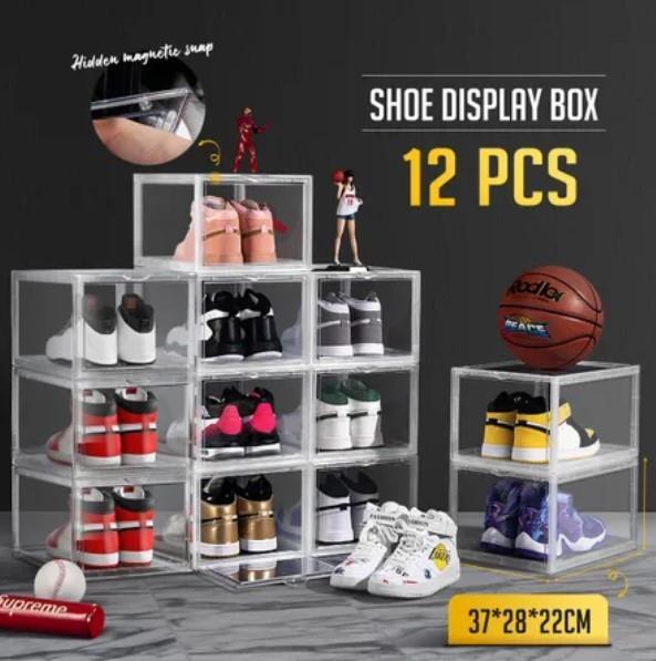 12PCS Shoe Storage Box Stackable Sneaker Display Case Plastic Boxes Extra Large