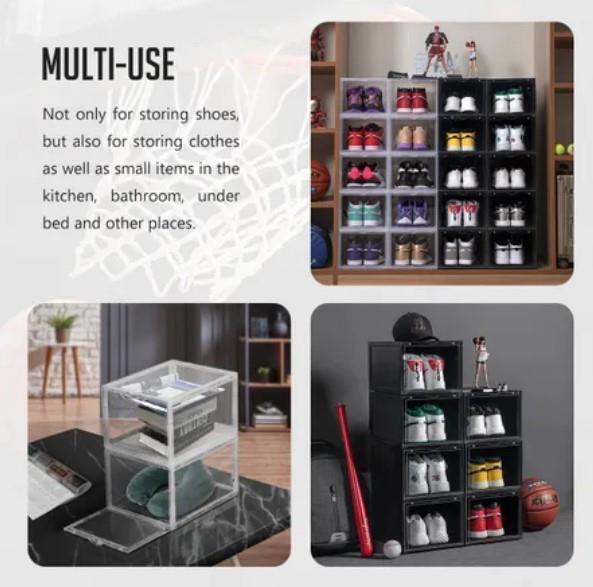 - Various applications: the storage box is not only suitable for storing shoes, but also ideal for organising clothes and other small items in the bedroom or bathroom. By putting these boxes at your entryway, wardrobe, door entrance, garage, hallway, kitchen and more, you can store anything easily.