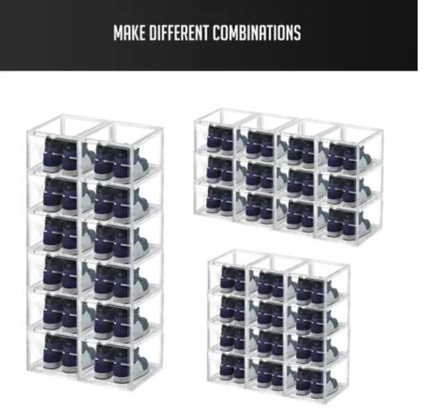- Stackable & Easy to Assemble: the shoe organiser offers an ideal choice for sneaker collectors. The stackable design allows the shoe boxes to be stacked stably and saves your space.