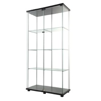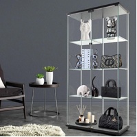 This sleek 4-tier glass display cabinet features 2 magnetic doors for easy access and durable 4mm tempered glass shelves. Crafted with MDF-covered top and bottom, it holds up to 3.5kg per tier and 200kg total weight. Perfect for elegantly showcasing your collections, from Bearbrick figures to luxury bags and trophies.
