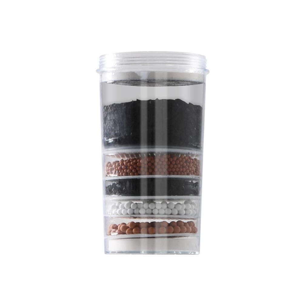 Six-layer filtration cartridge: Activated carbon (x2) White mineral balls Red mineral balls Zeolite Ceramic