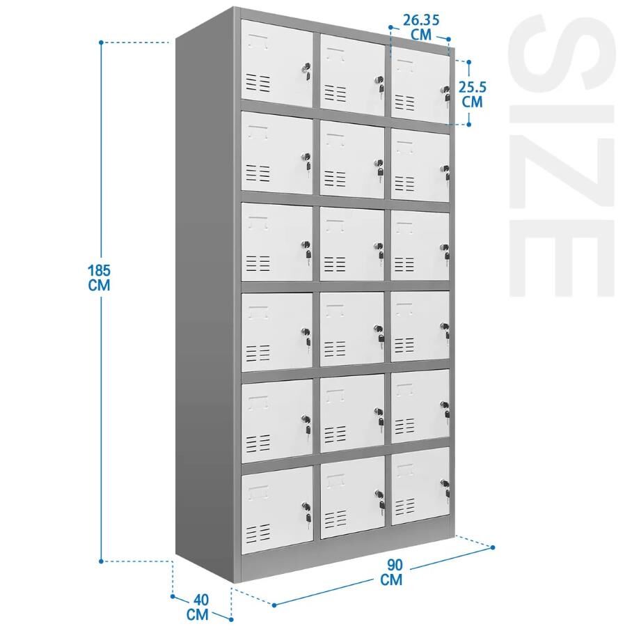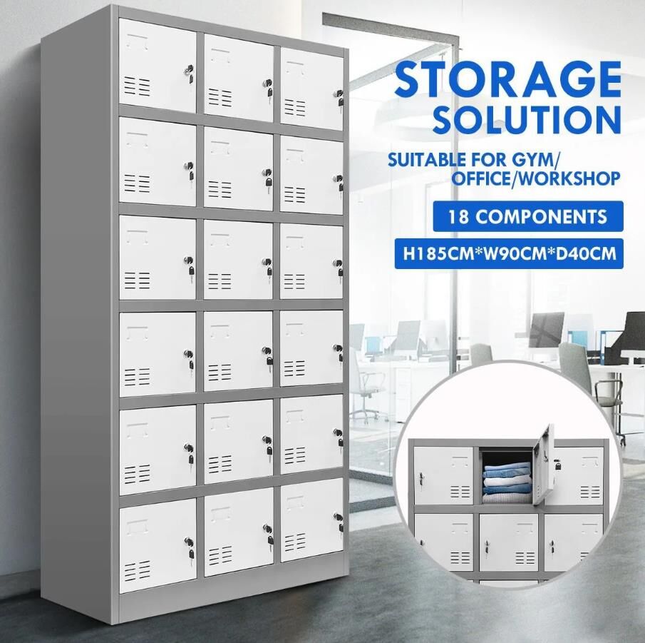 18 Doors Metal Steel Locker Gym Office School Home Stationary Storage Cabinet