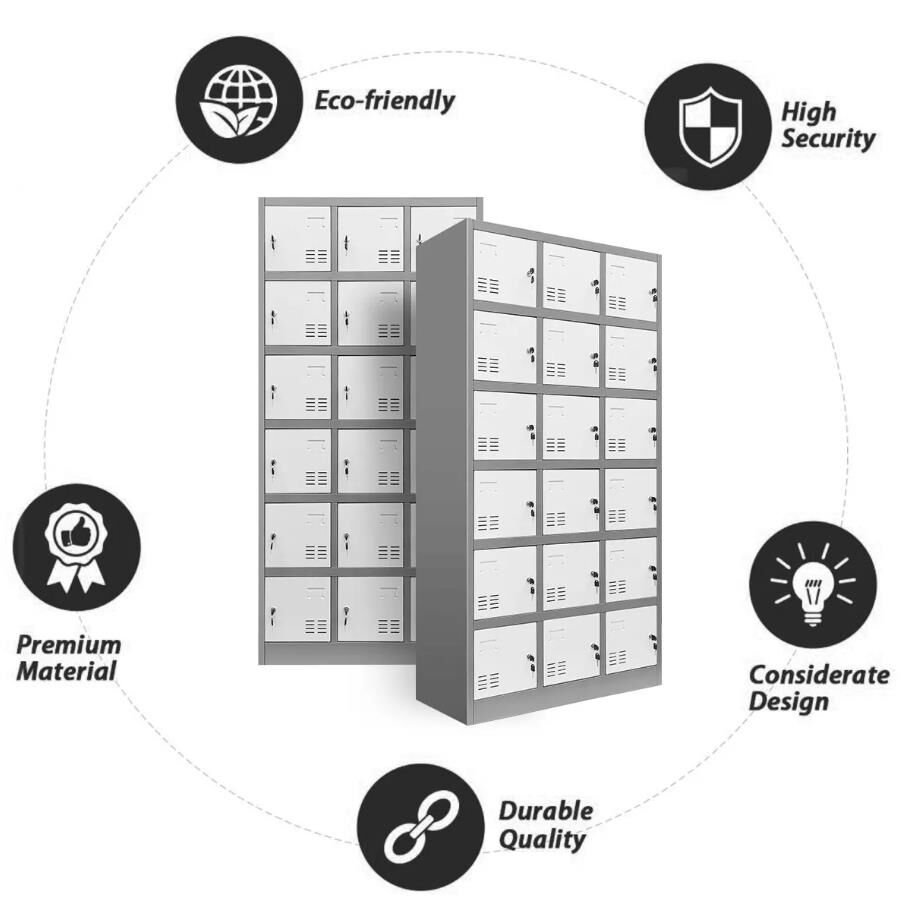 This 18 doors steel locker is suitable for home, school, lab, gym, garage, and more places. Adopting 0.8mm thick steel and high-quality powder coating, the locker is highly durable in quality, and with a secure locking system, it is perfect to keep things in safety. There are 18 lockers included, and each locker can hold things of up to 40kg. The metal locker cabinet also comes with built-in air vents for appropriate ventilation. Having this steel storage locker in your place, you will enjoy its durability for many years. Order it right now?