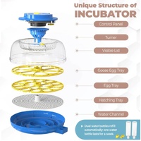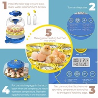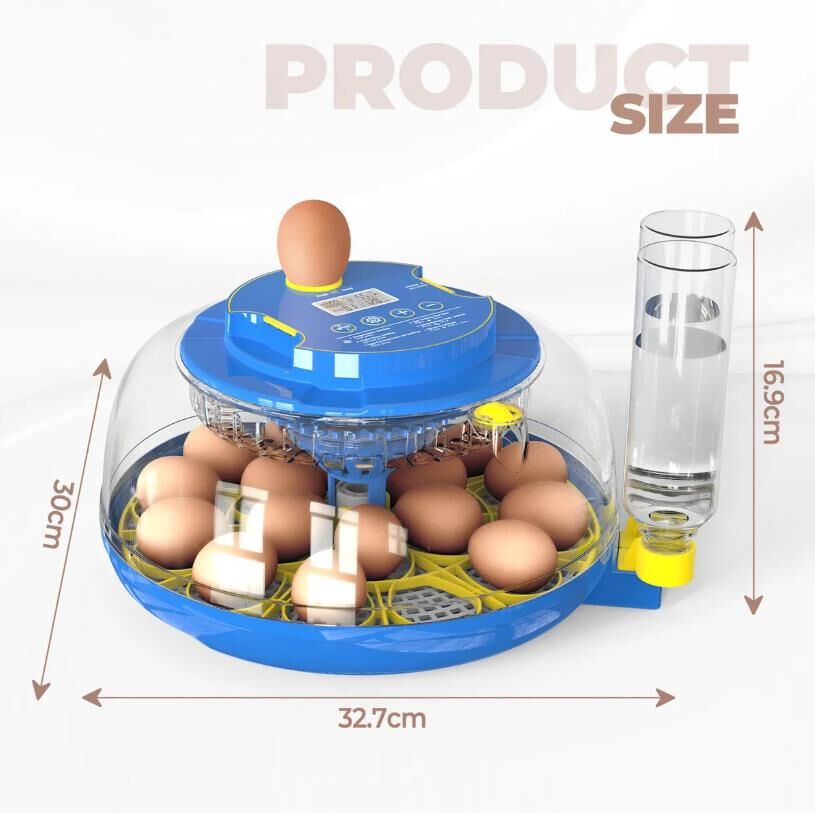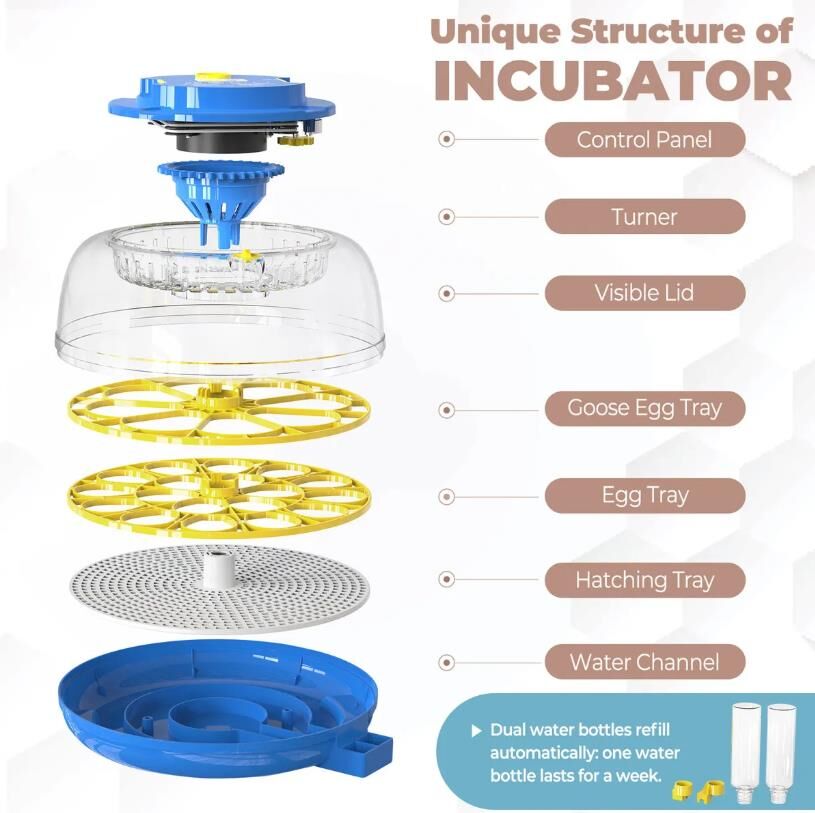 - Automatic Egg Turning & Water Addition: Eggs are automatically turned every 120 minutes, with an automatic water filter for humidity control. Water bottles (not included) can be used to adjust humidity levels.