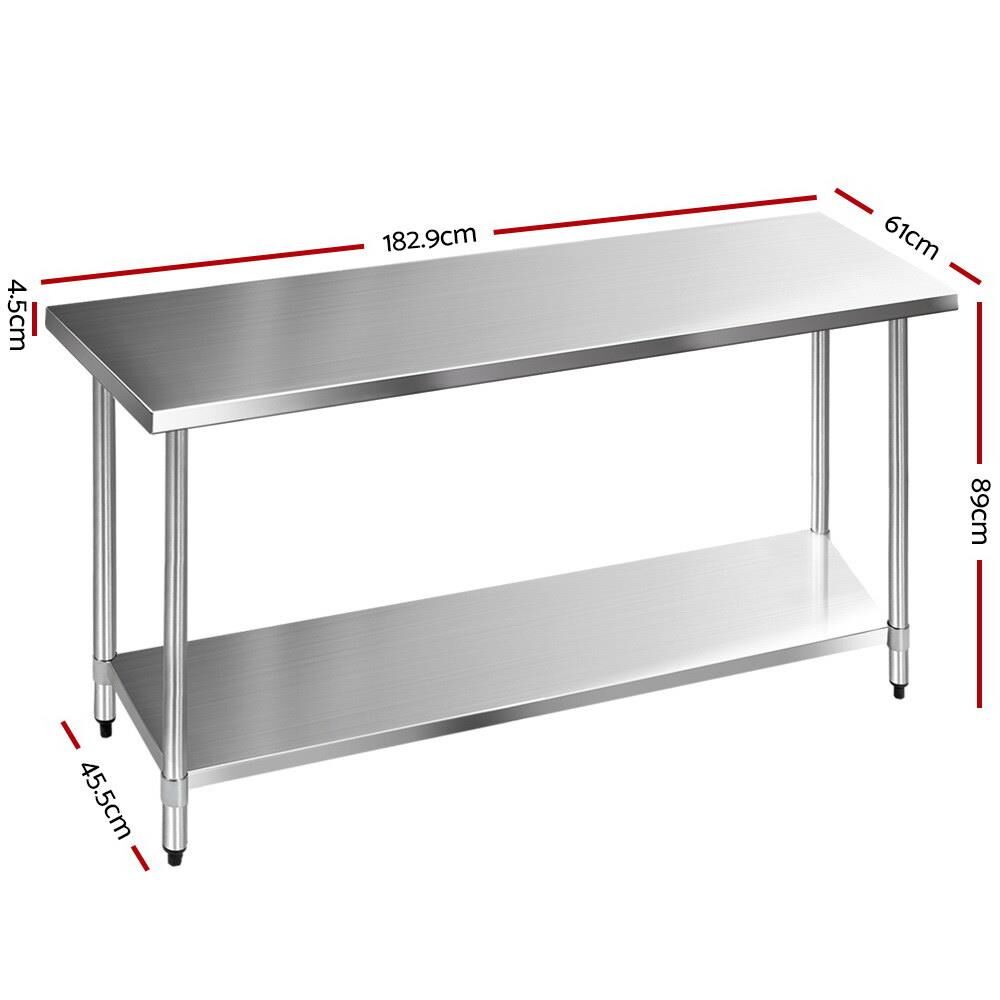 Cefito Stainless Steel Kitchen Benches Work Bench Food Prep Table 1829x610mm 430