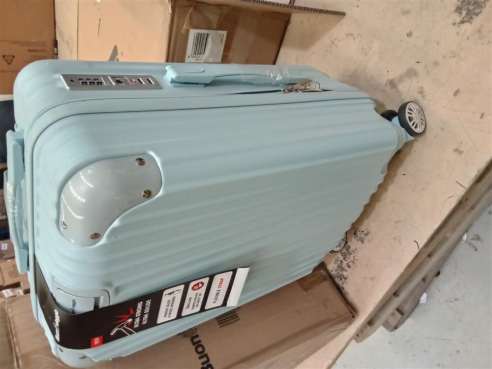| Shell Material | Enhanced PC + ABS | Interior Material | Polyester lining | Handle Material | Aluminium | Product Dimensions (LxWxH) approx. | 39x22x57-100cm | Weight Capacity approx. | 40L | Net Weight approx. | 2.5kg | Colour | Pale blue