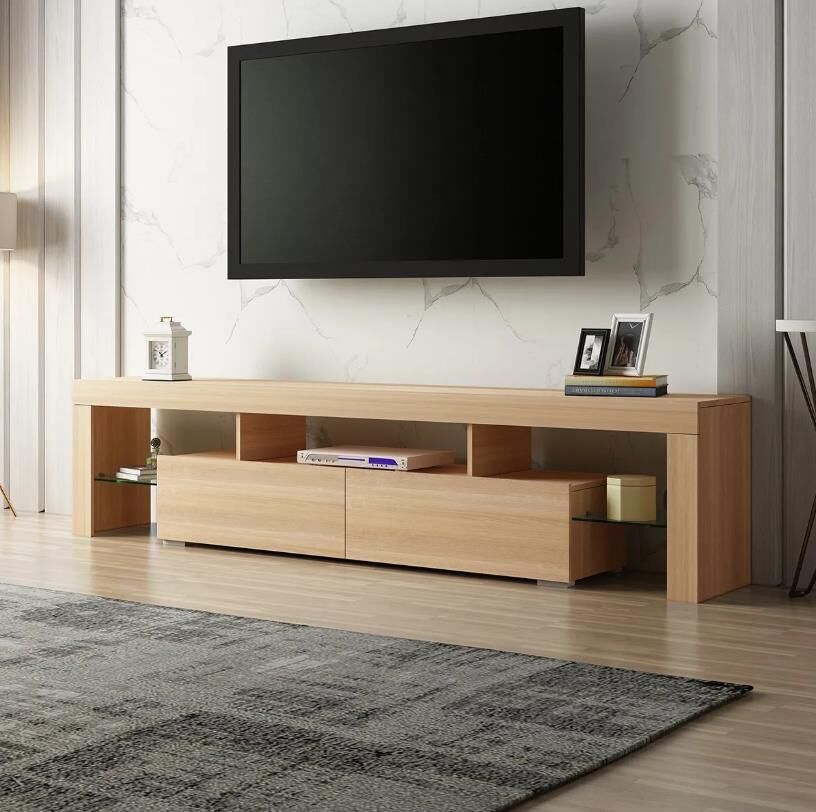 Upgrade your home decoration and improve your lifestyle with this modern tv stand . Constructed in high quality material with classic oak high gloss finish, the entertainment unit is durable and fashionable, perfect for your living room, lounge room, bedroom or other places. Boosting generous storage space with flat tabletop, shelves and drawers, the tv unit cabinet ensures to collect anything you needed, like TV, DVDs, CDs, books, magazines and other decorations such as vases and photos. Order the tv stand unit now entertaining yourself and your family, friends.