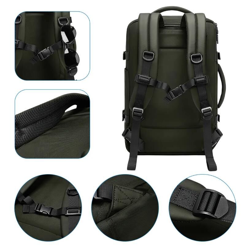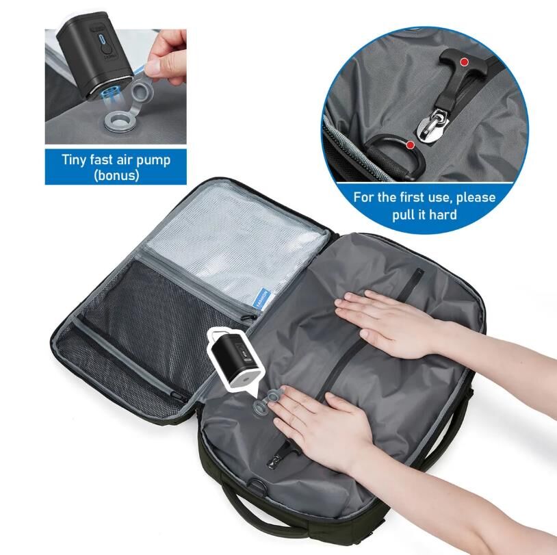 Embark on your adventures with this vacuum travel backpack. Meticulously crafted with durable, wear-resistant, and breathable Oxford fabric, complemented by a polyester lining, our travel rucksack is built to endure the demands of your journeys. Boasting multiple storage compartments with an expandable capacity of 22-45 litres, the travel bag offers roomy space to accommodate all your essentials. Further, its innovative vacuum compression system maximises space and allows for efficient packing. For added convenience and comfort, this vacuum bag comes equipped with a smooth zipper for effortless access to your belongings and a physiological curve back for ergonomic support during extended periods of carrying. Also, the computer interlayer interior safeguards your PC and the various pockets keep your items organised and within easy reach. Whether you’re on a business trip, exploring new destinations, or simply commuting to the office, this vacuum backpack is the perfect companion.