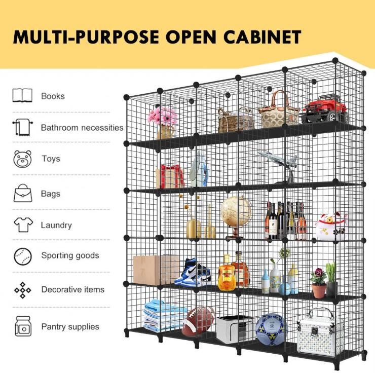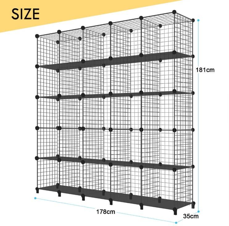- Abundant Storage Space: It contains 25 cubes of wire shelving. The size of each cube is 35x35cm, providing a large space to store shoes, toys, clothing, handbags, etc.