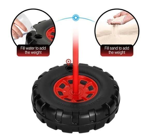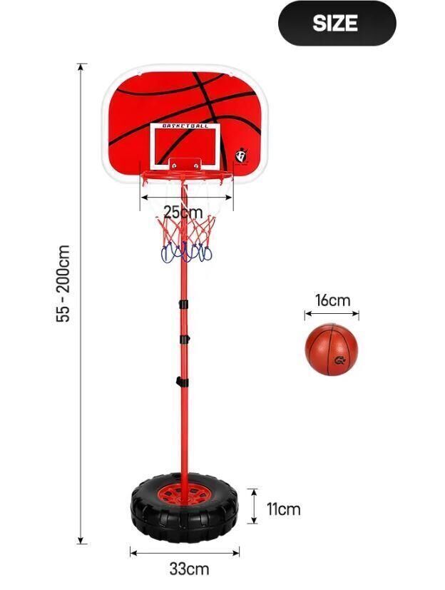 Take this basketball hoop home and have a great time with your child playing basketball indoors or outdoors such as in the backyard. The basketball stand is portable for easy movement and it is height-adjustable to fit kids from 5 to 14 years old. Made of high-quality plastic and metal, the basketball hoop is durable for long-term use. It is perfect for playing or training, and basketball shooting exercise to improve children's strength, eyesight, observation and team cooperation ability. Moreover, with this basketball training kit, you will enjoy more quality bonding time with your little ones. Its accessories include basketballs, a stand, a backboard, a base, an inflator pump and other kits. To bring home more joy, buy this basketball hoop right now.