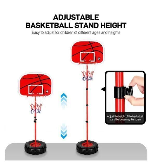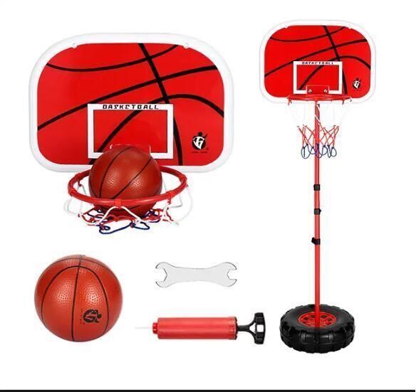- Comes with basketballs, a stand, a backboard, a base, an inflator pump and other accessories