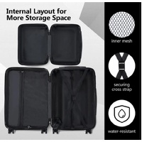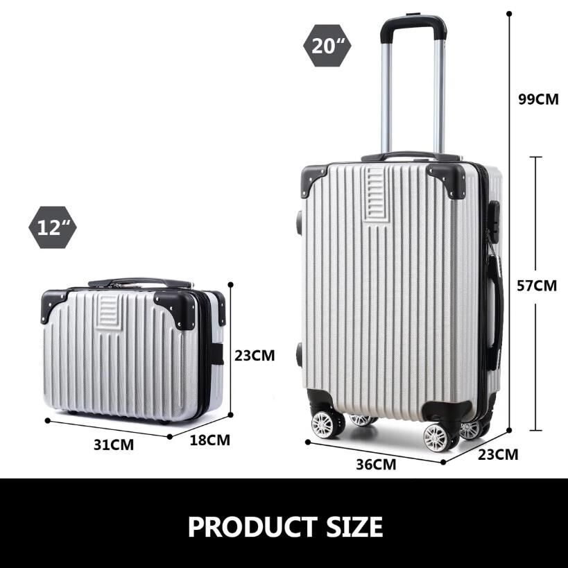 This 2 Piece Carry On Hard Shell Luggage Set covers the essential functions and has a sense of luxury flair. The travel suitcase set features a 20-inch rolling checked bag and a 12-inch vanity bag to hold your travel supplies, like clothes, socks, skin products, and cosmetics. Lightweight and stylish, the carry-on luggage kit is crafted with a robust ABS hard casing and a high-quality polyester lining interior, which is strong and durable to withstand rough use. Moreover, the traveller's bags are scratch-proof and impact-resistant. As the large suitcase comes with a retractable aluminium iron pull rod, fully rotating wheels, and carrying handles, you can take it anywhere easily for any purpose. Better still, it has a well-designed internal layout and a secure combination lock for organisational storage and maximum safety. Meanwhile, the small suitcase with a fastening strap is compact for effortless portability.