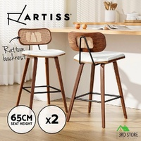2x Artiss Bar Stools Kitchen Counter Rattan Chairs PU Leather Padding