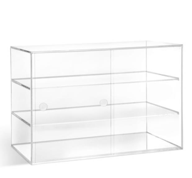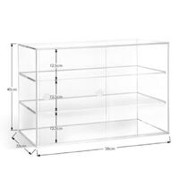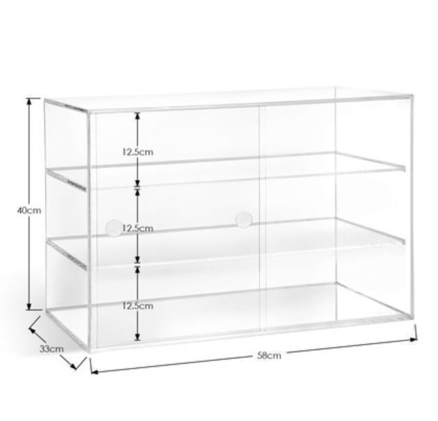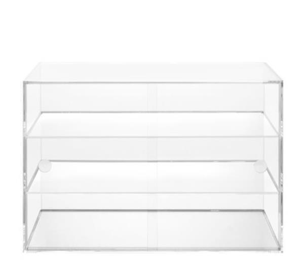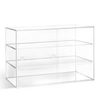 Showcase various food items in this large crystal acrylic display cabinet in your kitchen, bakery, coffee shop, bar or restaurant. Boasting food-grade acrylic and 5mm thick shelves with a height of 125mm between each shelf, this bakery display case is a perfect and safe place to present cakes, sweets, cookies, muffins, donuts, and other pastries. It can also be used to showcase knickknacks, toys, gifts and more. The well-designed cabinet has a crystal clear design, greatly enhancing the visual appeal of displayed items, thus promoting your products to your customers unintentionally and stimulating the sales. The sliding doors at the back offer easy and quick access. It looks well in any modern or traditional style interiors.