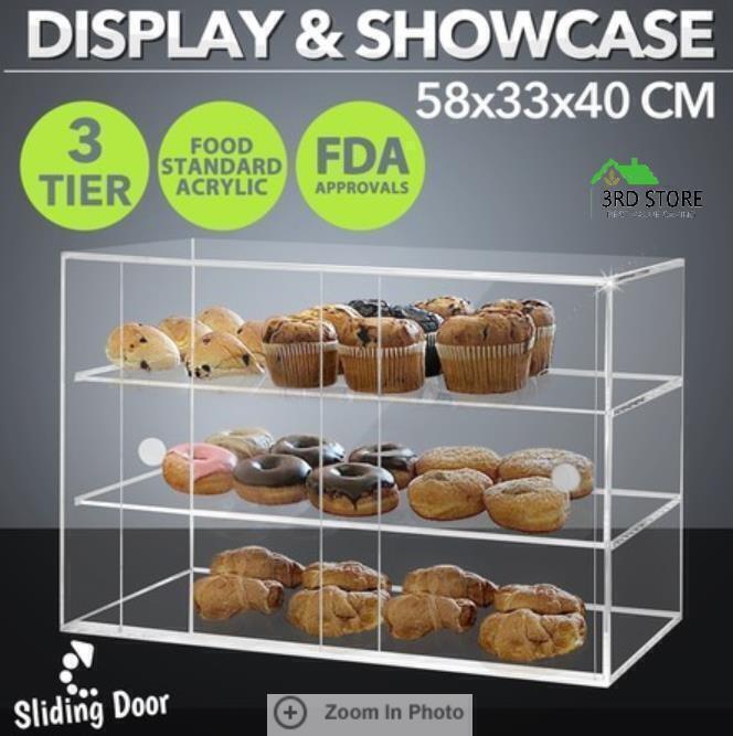 3-Tier Large Acrylic Bakery Cake Display Cabinet Donuts Cupcake Pastries 5mm