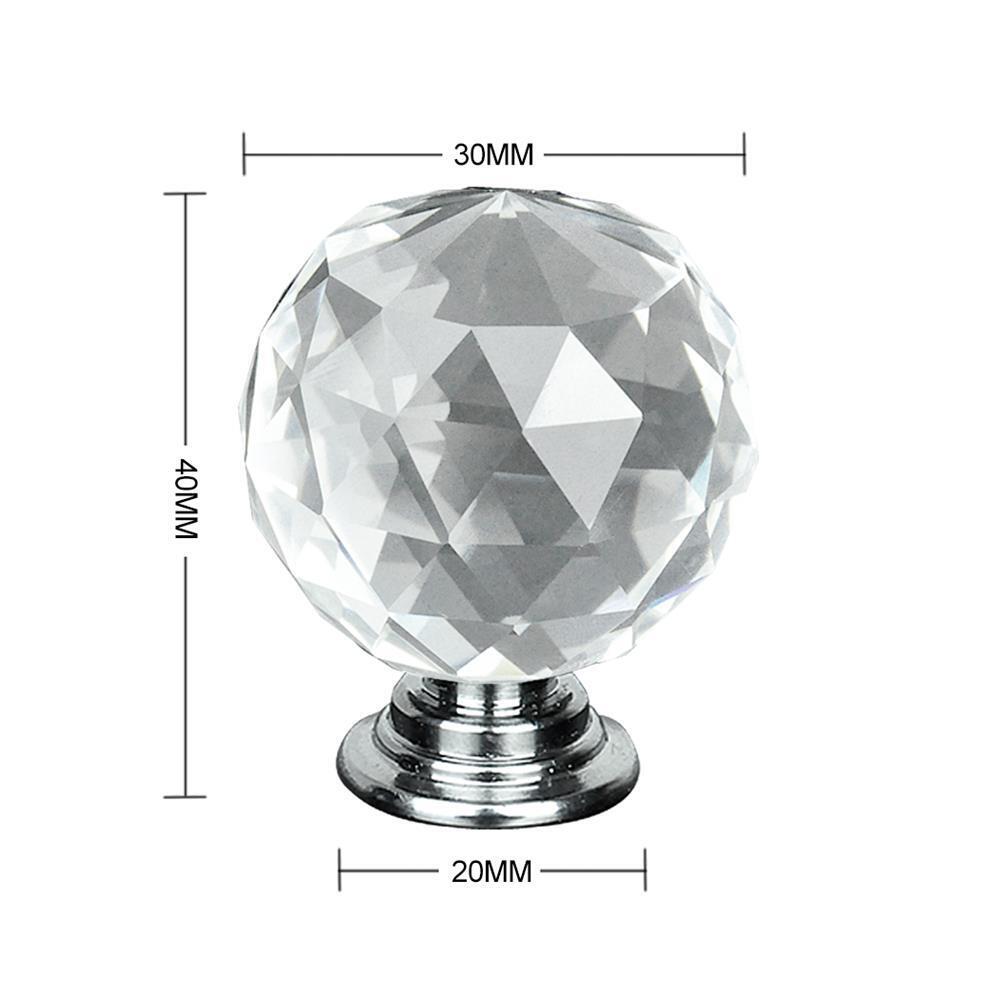 30mm 10Pack Clear Crystal Glass Door Pull Knobs Knob Drawer Handle Cabinet +Screw