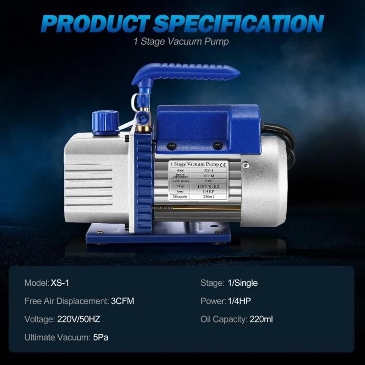 3CFM 1 Stage Refrigerant Vacuum Pump Air Conditioning Car Maintenance HVAC 1/4HP