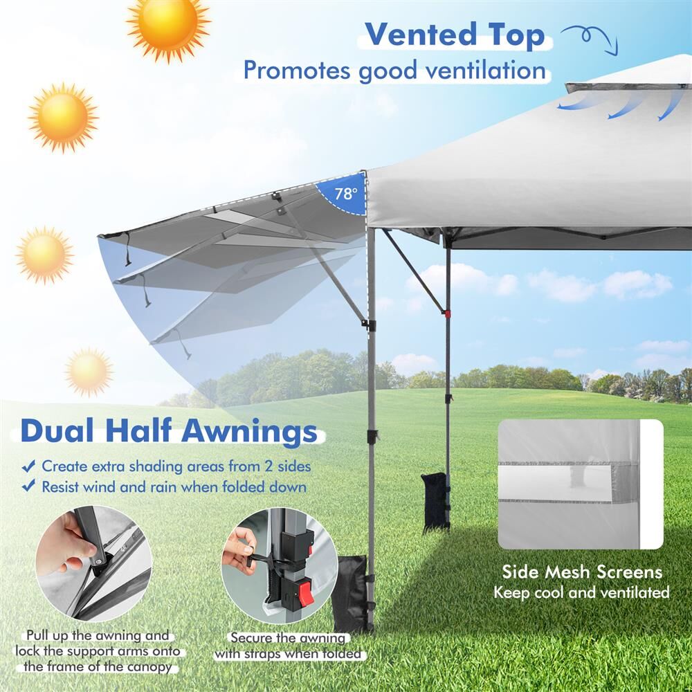 3m x 5.3m Portable Gazebo Pop-up Canopy Tent Marquee W/Dual Half Awnings Outdoor