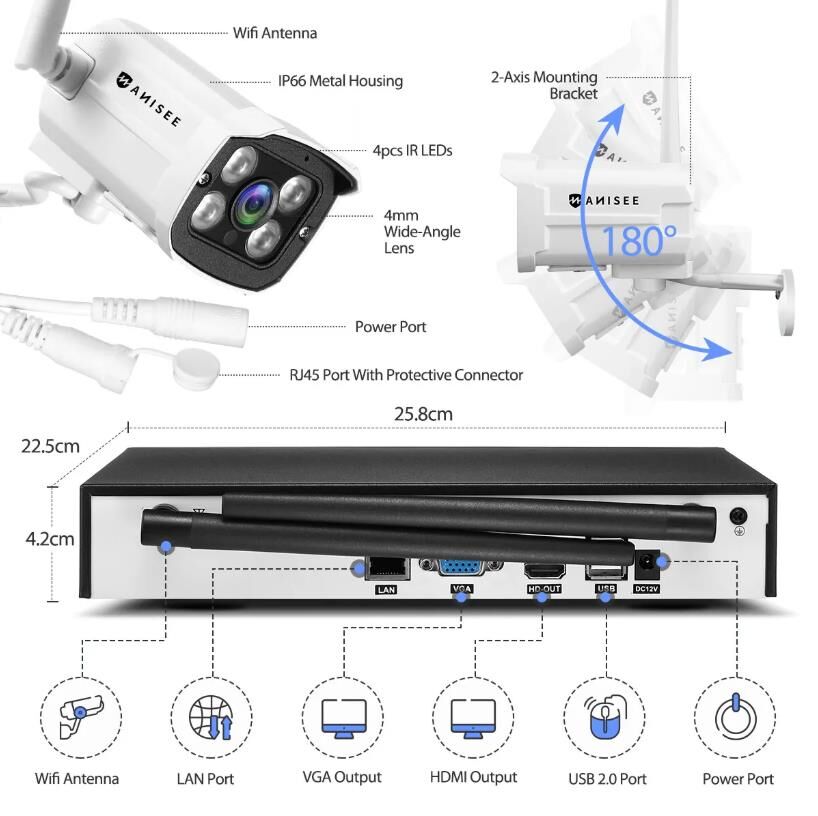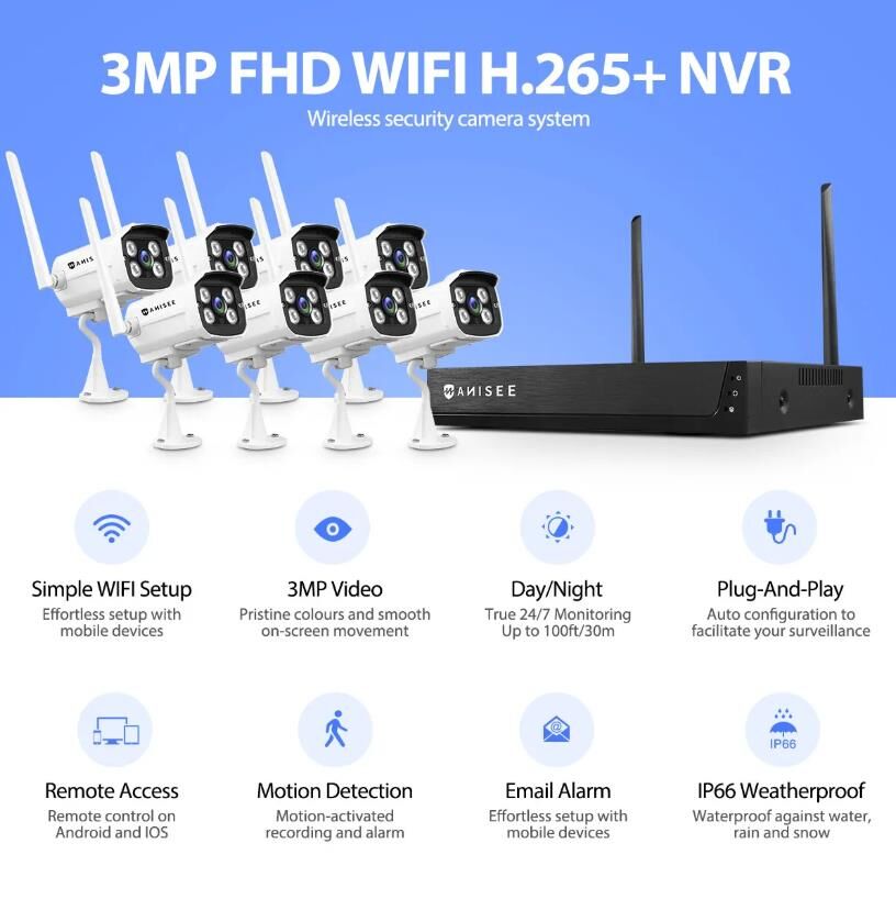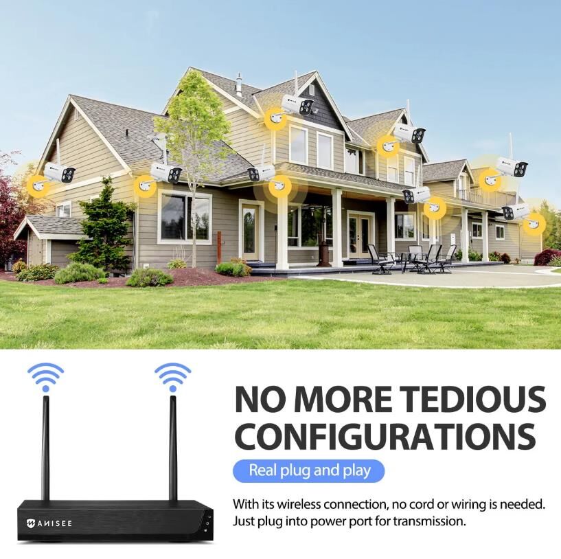 - 3MP H.265+ wireless network recorder and 8pcs 3MP wireless cameras