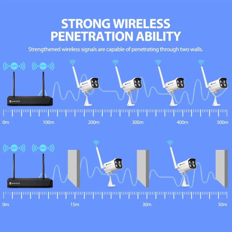 Expand your surveillance network with this 3MP 8-channel NVR security camera Set. Its advanced 3MP H.265+ wireless network recorder and 8pcs 3MP wireless cameras deliver crystal-clear images to ensure you capture every detail. With a transmission distance of up to 800m in open space, you can enjoy uninterrupted coverage for your entire property. Besides, easy setup is guaranteed with the automatic wireless connection and plug-and-play configuration. Safeguard your home with the motion detection function, which triggers instant alerts and alarm outputs to inform you. Remote monitoring and control are made easy with the Android/Apple mobile app, allowing you to stay connected from anywhere. Enjoy user-friendly operation with its intuitive interface. Our home CCTV camera is ideal for homes, offices, small businesses, and retail stores, providing a comprehensive security solution.