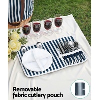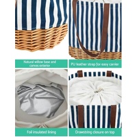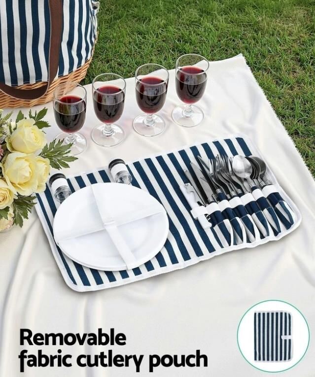 4 Person Picnic Basket Bag Set Wooden Blanket Cooler Outdoor Insulated