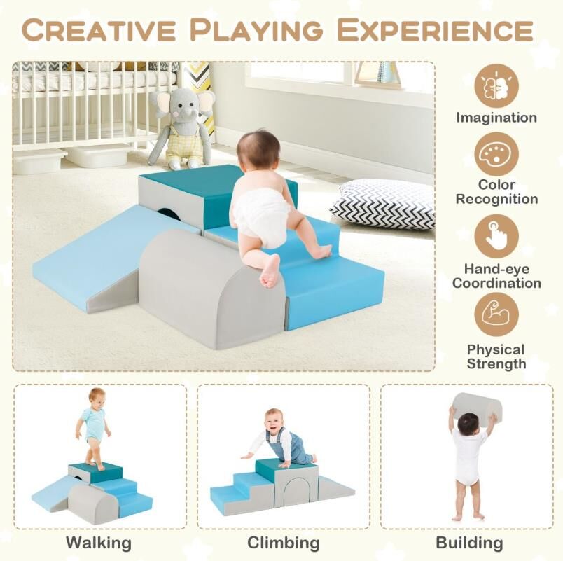 4-Piece Climb and Crawl Foam Block Play Set for Infant Baby