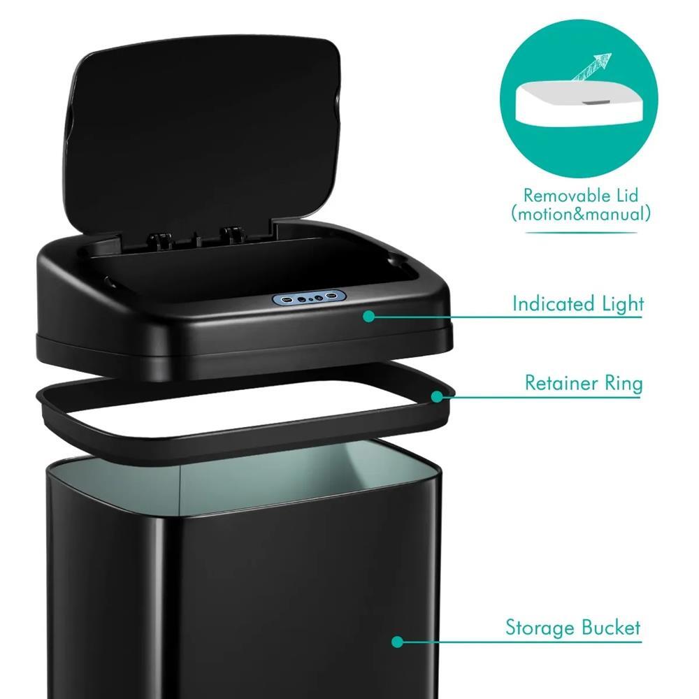40L Rubbish Bin Touchless Motion Sensor Dustbin Automatic Kitchen Trash Can BK