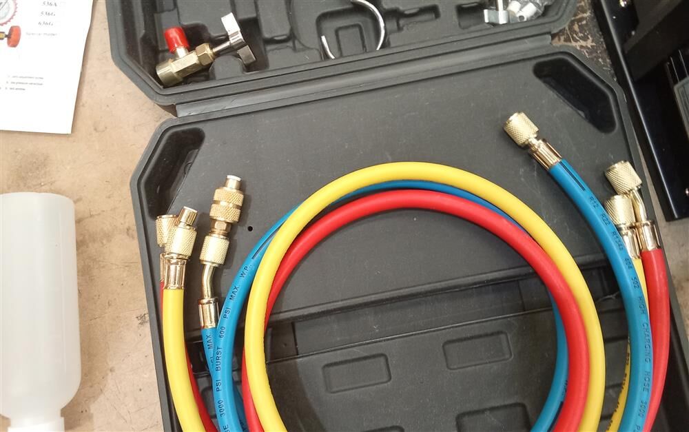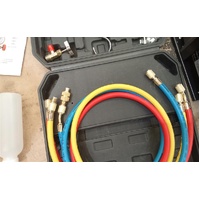 - Three-coloured Hoses: It has three-coloured hoses: yellow, blue, and red. All the hoses are installed with brass fittings. Different colours help identify the high-pressure, low-pressure, and filling hoses. The working pressure of the hose is 600 PSI to 3000 PSI.