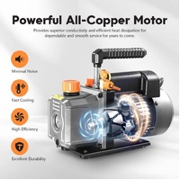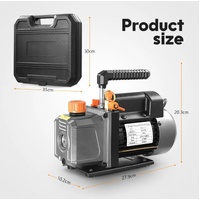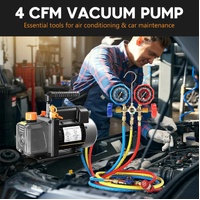 Optimise performance and accuracy of your AC and refrigeration projects with this Single Stage 4CFM Vacuum Pump. Featuring lightweight cast aluminium and an ergonomic grip handle, this refrigerant vacuum pump promises remarkable sturdiness, durability, comfort and portability. Plus, the direct-driven, all-copper motor ensures effortless start-up, while the built-in cooling fan and aluminium alloy casing provide thermal protection and effective heat dissipation. Moreover, the three-colour hoses allow for precise operation at pressures ranging from 600PSI to 3000PSI, while the brass-fitted safety caps prevent oil leaks, boosting safety. Additionally, the 1/4" oil fill port simplifies oil addition, the oil drain hole speeds up oil drainage, and the gas exhaust port prevents oil spouting efficiently. Besides, the backflow prevention technology minimises chamber contamination for optimal performance and longevity. Even better, the manifold gauges are compatible with R502, R410, R134A, R12 and R22, making it versatile for air conditioner cleaning, vehicle maintenance, vacuum packaging, refrigerator vacuuming, and industrial applications.