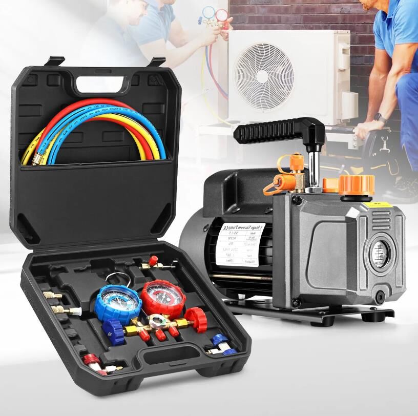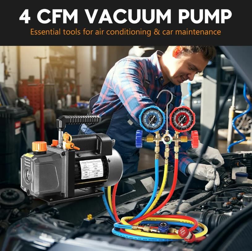 4CFM Vacuum Pump Set 1 Stage Air Conditioning HVAC Refrigeration Manifold Gauges