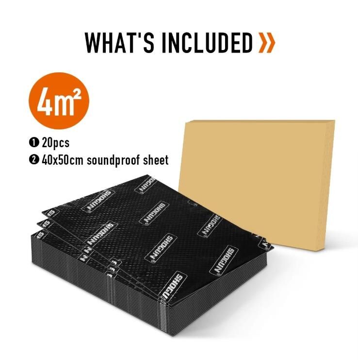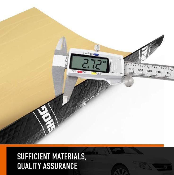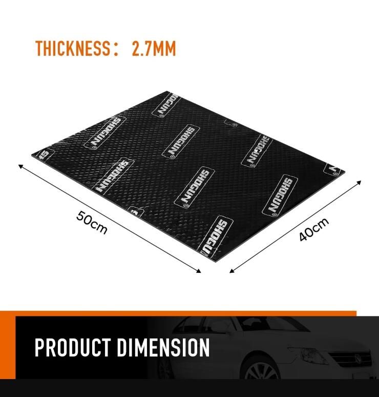 The butyl rubber sound deadener for your car is the best way to block the unwanted noise from the outside and lessen the metal panel vibrations. The sound deadening mat made from high-purity butyl rubber material is resistant to water, fire, cold and has strong adhesion for years to come. The top aluminium layer is for enhanced strength and protection. It is great for adding to the hood, ceiling, firewall, doors, wheel well, floor pans from front to back and tailgate of your vehicle. This kind of sound treatment can not only be used in automobiles but also trucks, SUV, RVs and more. Get more benefits from installing the sound deadener which can better the audio system performance.