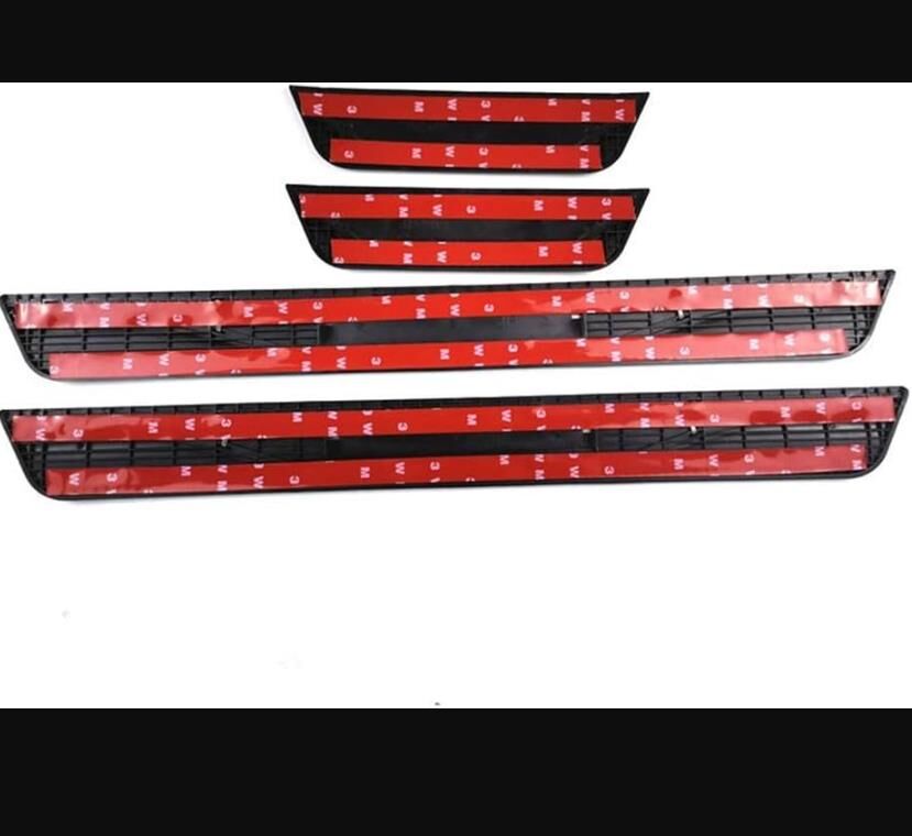 - 4. Easy to Install: Simply tear off the label at the back of the door sill scuff plate to reveal the sticker and attach it to the threshold of the car. Design of the protectors includes the logo of the car model,which perfectly matches with your car.
