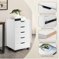 Organise your workspace and improve productivity and efficiency using this Mobile Filing Cabinet. Ideal for any modern home or office, it blends functionality perfectly with elegance. Keep your workspace or room organised and clutter-free by collecting various essentials in one place. The tabletop surface offers roomy space for printers, desk lamps, or telephones, and five spacious drawers provide versatile storage for documents and other office supplies. Effortlessly move it around your space with four lockable universal wheels. Plus, the high-quality construction ensures durability and reliability, while the waterproof surface makes it easy to clean and maintain.
