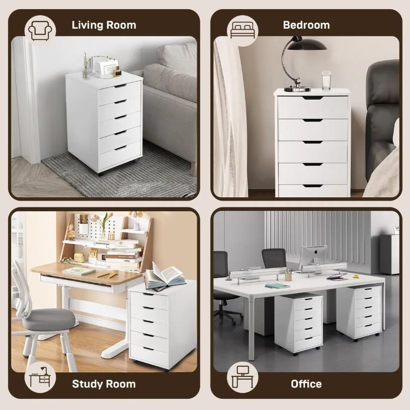 - Strong Construction: This office cabinet is made of high quality thickened boards for durability and sturdiness. The 4 lockable casters also add stability to the whole structure and the considerate arc of each drawer brings convenience for daily use.