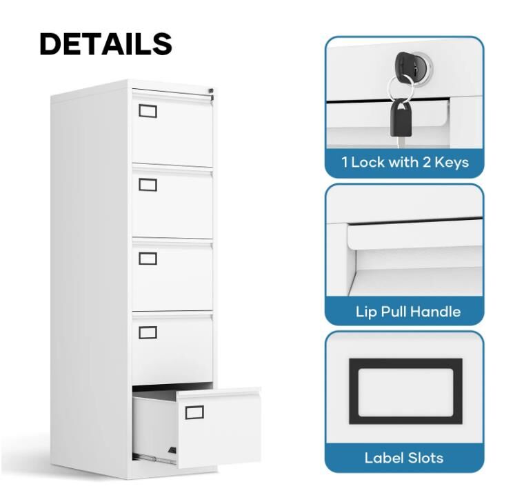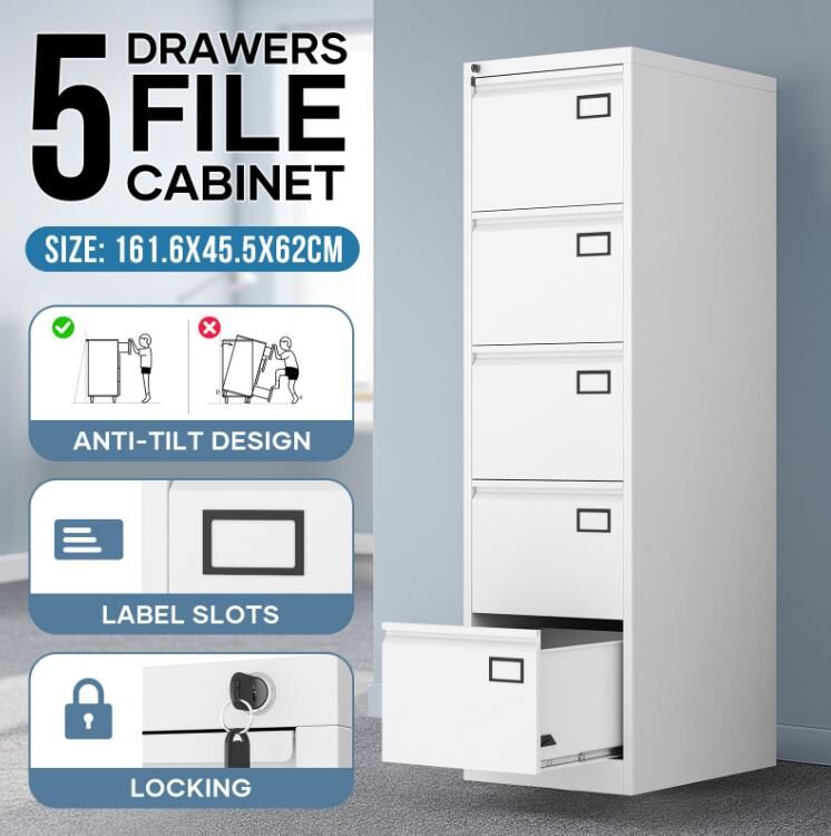 5 Drawer Filing Cabinet Steel Office Storage Locking Unit for Letter A4 F4 Files