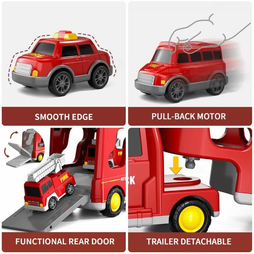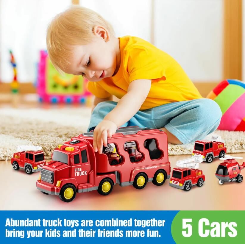 5 In 1 Fire Carrier Truck Toy Car Set Toddler Construction Model Friction Gift