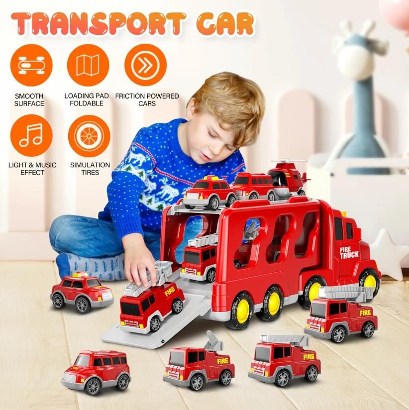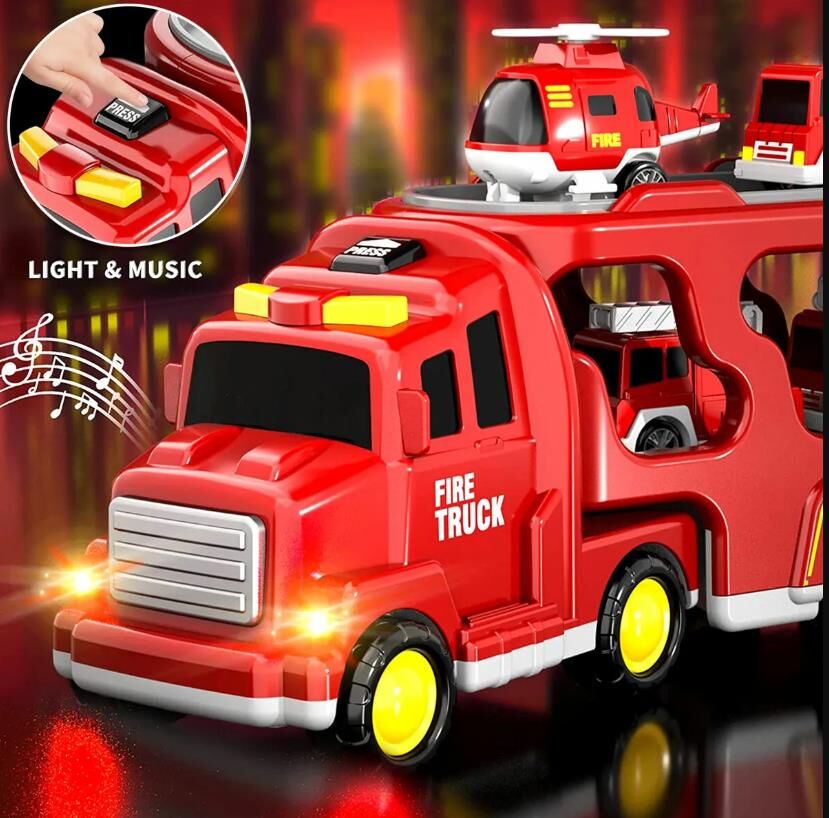 Ignite the passion for play with our Fire Truck Toy Set. Enhance the firefighting experience with realistic light and sound effects that mimic the actual sights and sounds of emergency response vehicles. The flashing lights and attention-grabbing sirens will transport your child into a world where they become the brave hero, responding to emergencies and ensuring safety in the playroom. Safety is our top priority. Crafted from high-quality, non-toxic materials, these Fire Truck Toys have durability and longevity for hours of imaginative play. Smooth edges and sturdy construction ensure worry-free fun, allowing your child to focus on their heroic adventures without any safety concerns. Whether it's a birthday, holiday, or any special occasion, this set promises to kindle the spirit of adventure in your little hero.