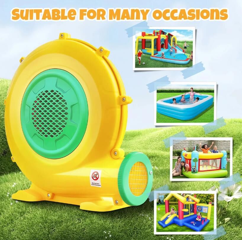 - Versatile Usage: Equipped with a powerful 550-watt motor and a large 11cm air outlet, it’s ideal for inflating bounce houses, water slides, obstacle courses, air sofas, and more.