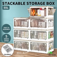 55L Storage Boxes Stackable Container with Lid 5 Sides Open Wardrobe Foldable