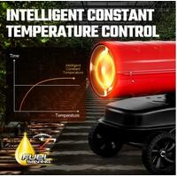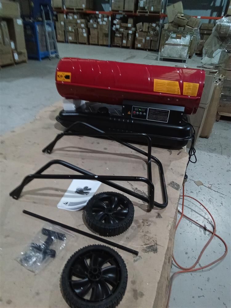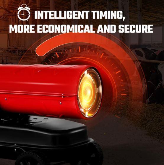 If you want to have an industrial fan heater to heat workshops or chicken farms, this diesel/kerosene industrial heater is the best choice. Featuring high efficiency and low consumption, this fan heater is cost-effective with a copper motor and a 58KW max heat output. With a larger air outlet, this diesel shed heater produces a maximum air output of 1100m³/h for quickly heating a larger area. Plus, the large air duct helps heat a 573m2 room readily. The digital dual display screen makes it more convenient to control the temperature. Also, its intelligent timing and constant temperature control contribute to added safety and fuel savings. This industrial space heater works great on different occasions like workshops, warehouses, garages, sheds, etc.
