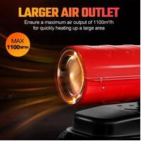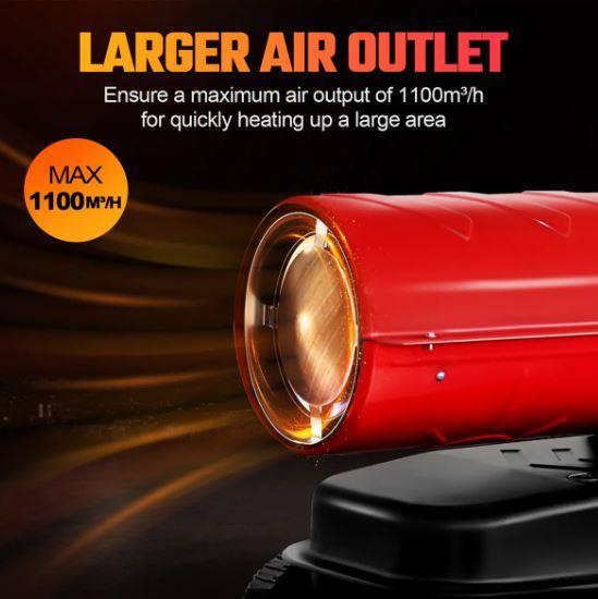 - Large air outlet ensures a maximum air output of 1100m³/h for quickly heating a larger area