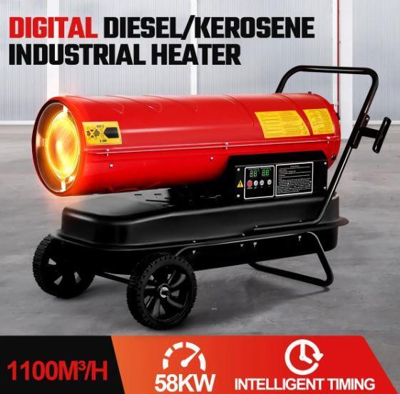 58KW Industrial Fan Heater Digital Kerosene Diesel Forced Hot Air Blower Fan