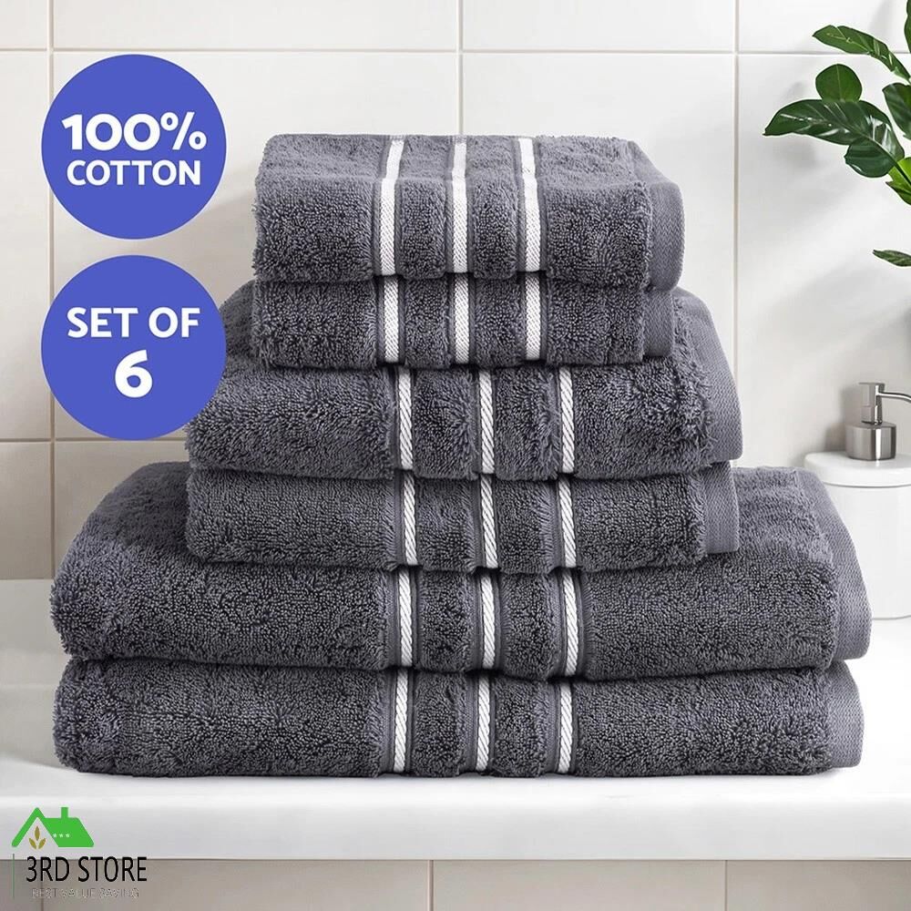 6 Pack Bath Towels Set Cotton Shower Beach Towel 650GSM Extra Soft Bath Mat Grey