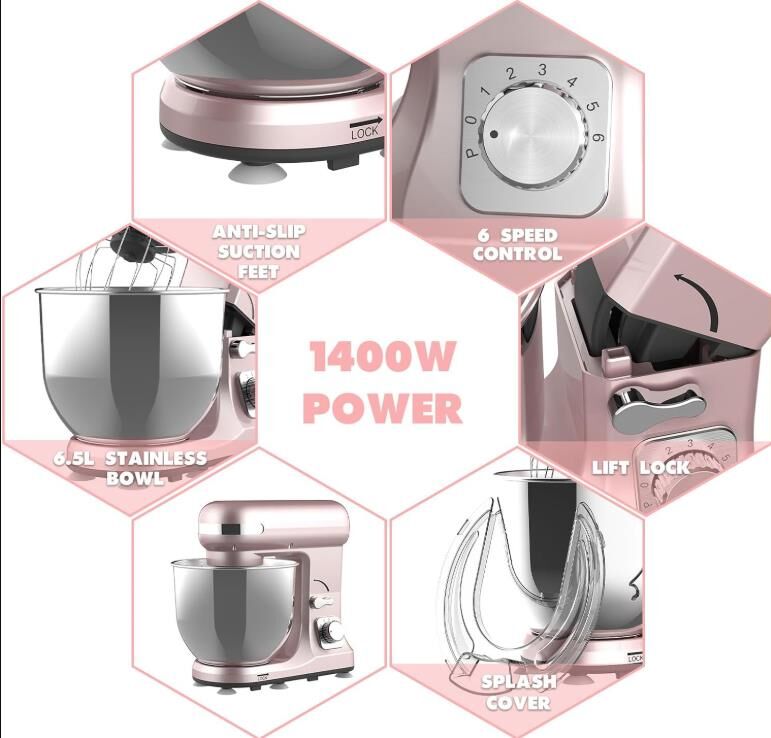 6.5L Stand Mixer, Pink Electric Food Mixer, 6-Speed Food Processor, Kitchen Mach
