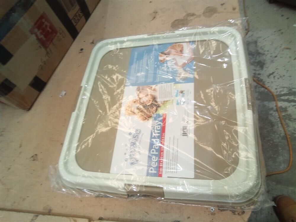 Securely keep your dog's training pad in place while he does his business with 60x60cm Pet Dog Pee Pad Holder Indoor Puppy Potty Training Tray. All you have to do is unlock the pad holder, put your pet's training pad on it, tuck the corners of the pad into the holder and lock the pad in place, then your pet is ready to go potty. This dog pad holder is designed with raised edges that help prevent your dog's messes from flowing over the pad and onto the floors or carpets. For extra security and stability, the bottom of the holder comes equipped with non-slip feet. Made of premium materials, this dog potty tray is robust and durable to withstand years of heavy use from your energetic dog or puppy.