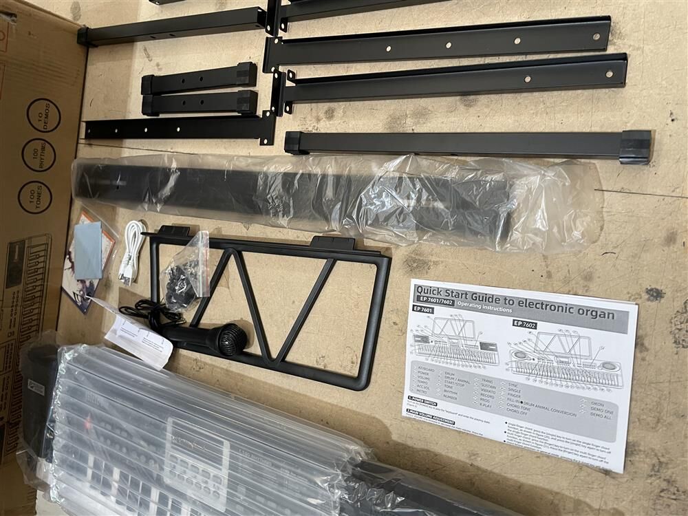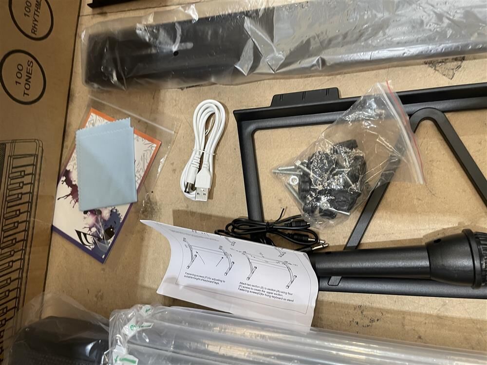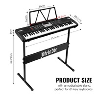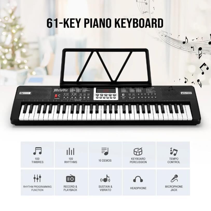 1 x Melodic 61-key standard keyboard 1 x adjustable stand 1 x music sheet holder 1 x microphone 1 x power adapter 1 x manual |