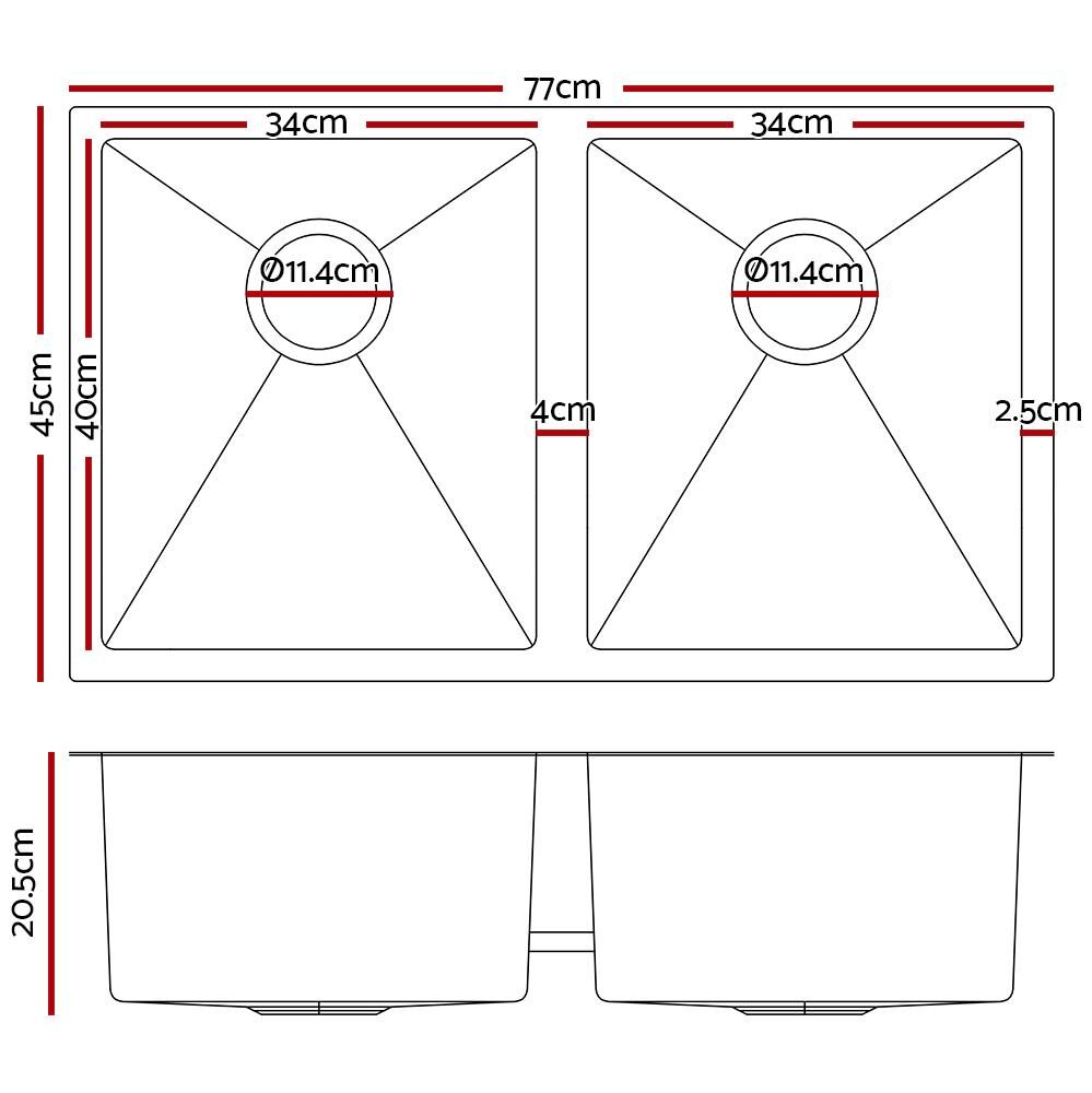 Cefito Kitchen Sink Basin Stainless Steel Under/Top/Flush Mount Bowl 770X450MM