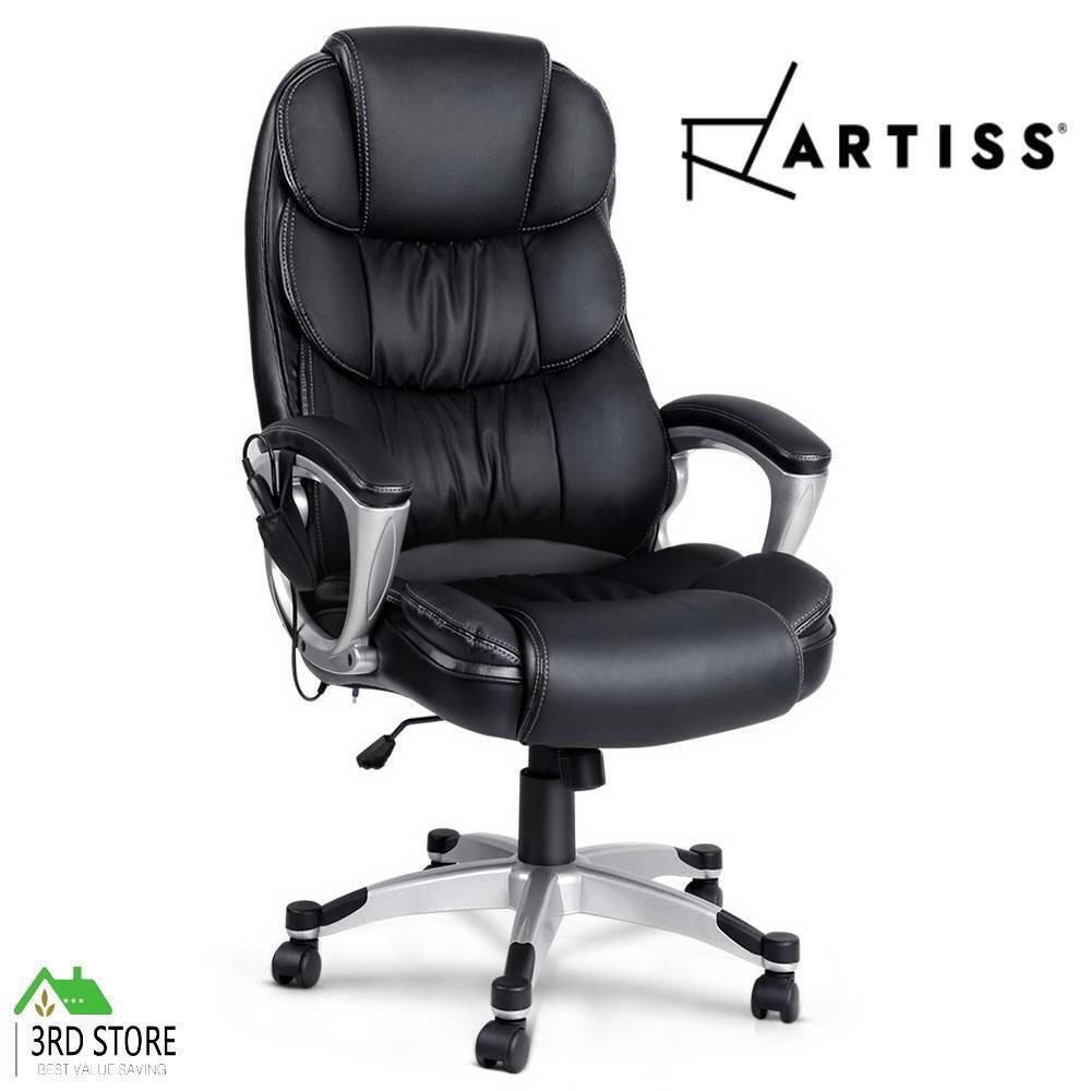 Artiss 8 Point Heated Massage Office Chair Vibration Executive Computer Black