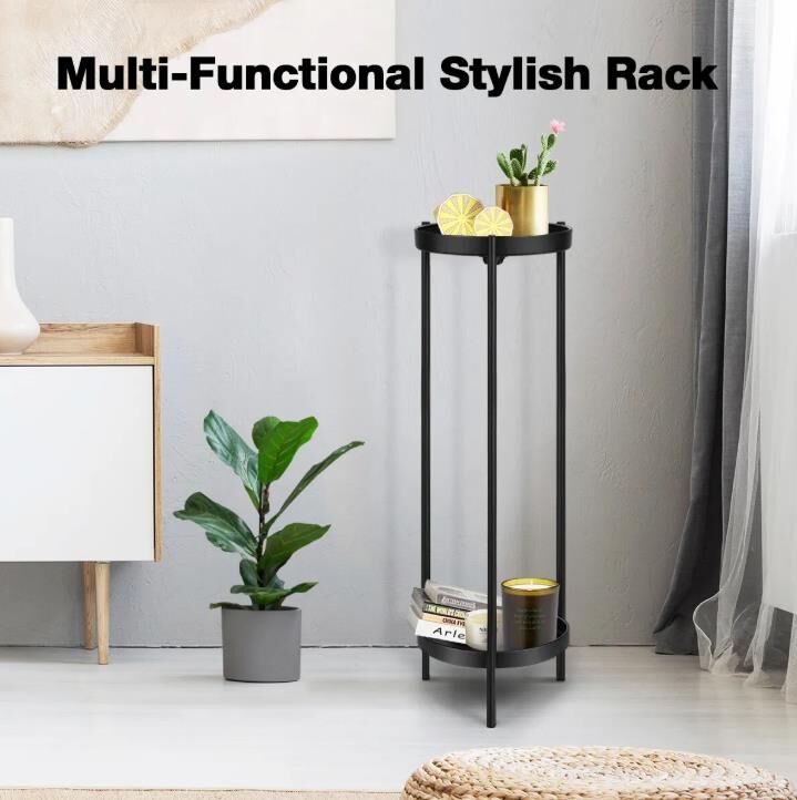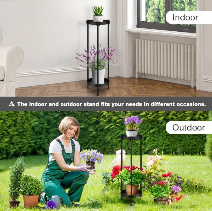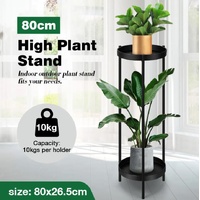 80CM High Plant Stand Metal Flower Pots Shelf Indoor Outdoor Corner Black Plante